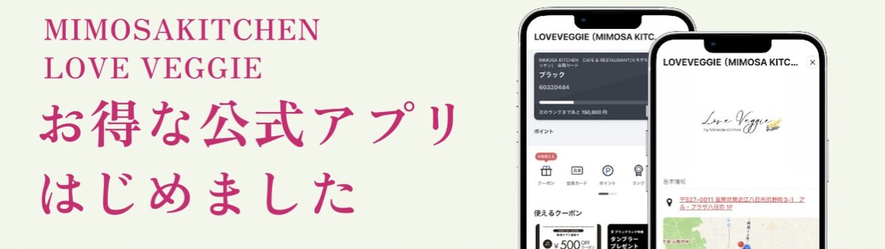 いつも当店をご利用いただきありがとうございます。 この度、MIMOSA KITCHEN loveveggieの公式アプリが2025年9月にリニューアルいたしました!