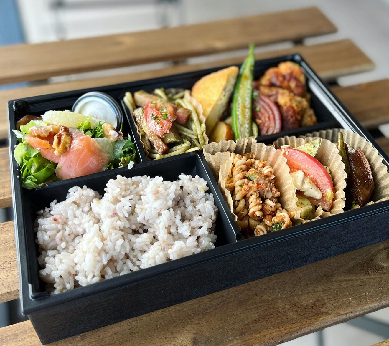 サラダやデリはもちろん、栄養バランスの整ったお弁当もご用意。季節ごとに変わる彩り豊かなメニューは、身体にやさしく、見た目にも楽しいとご好評をいただいています。