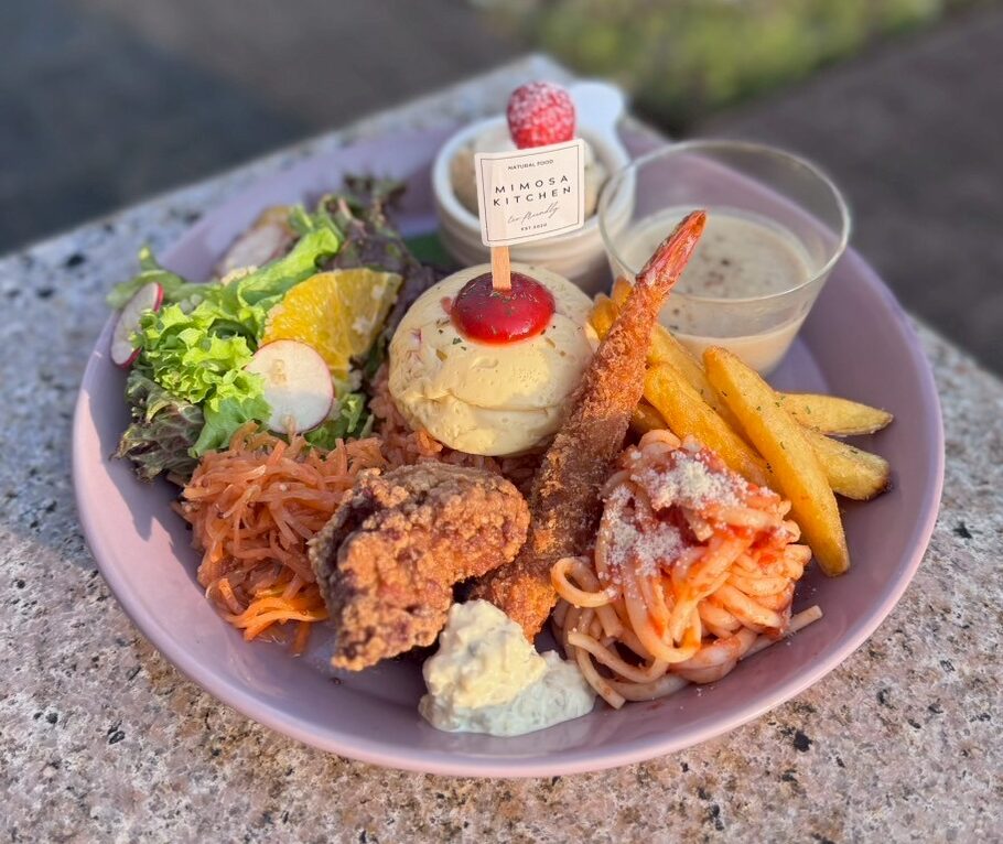 「今日はどれにしようかな?」と迷う時間も楽しい、ショーケースから選べるミモザプレートが人気です。旬の野菜をふんだんに使ったデリは、目にも鮮やかで体も喜ぶ美味しさ。